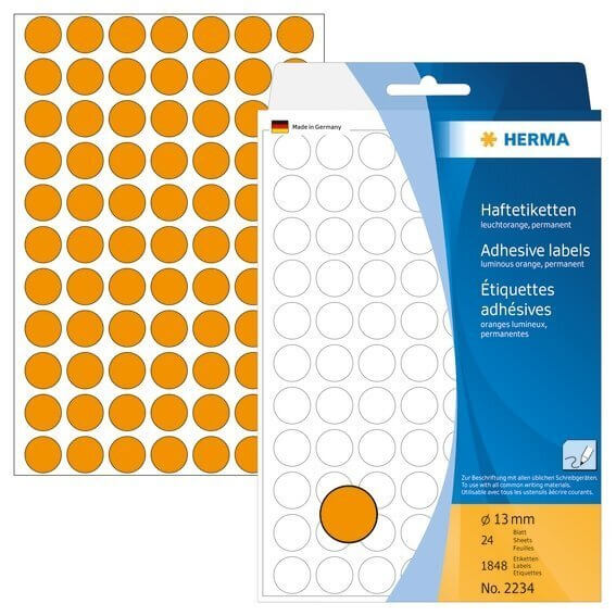 HERMA 2234 Vielzwecketiketten/Farbpunkte Ø 13 mm rund leuchtorange Papier matt Handbeschriftung 1848 St.
